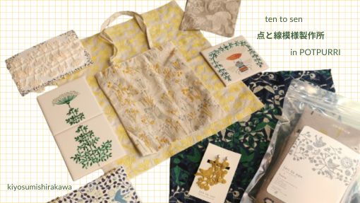 北海道を拠点に活動するデザイナーの岡理恵子さんが、日々の中で美しいと感じた風景や、音、記憶の中の情景を布・紙に描く「点と模様製作所」。今年もたくさんのアイテムを取り揃えています。