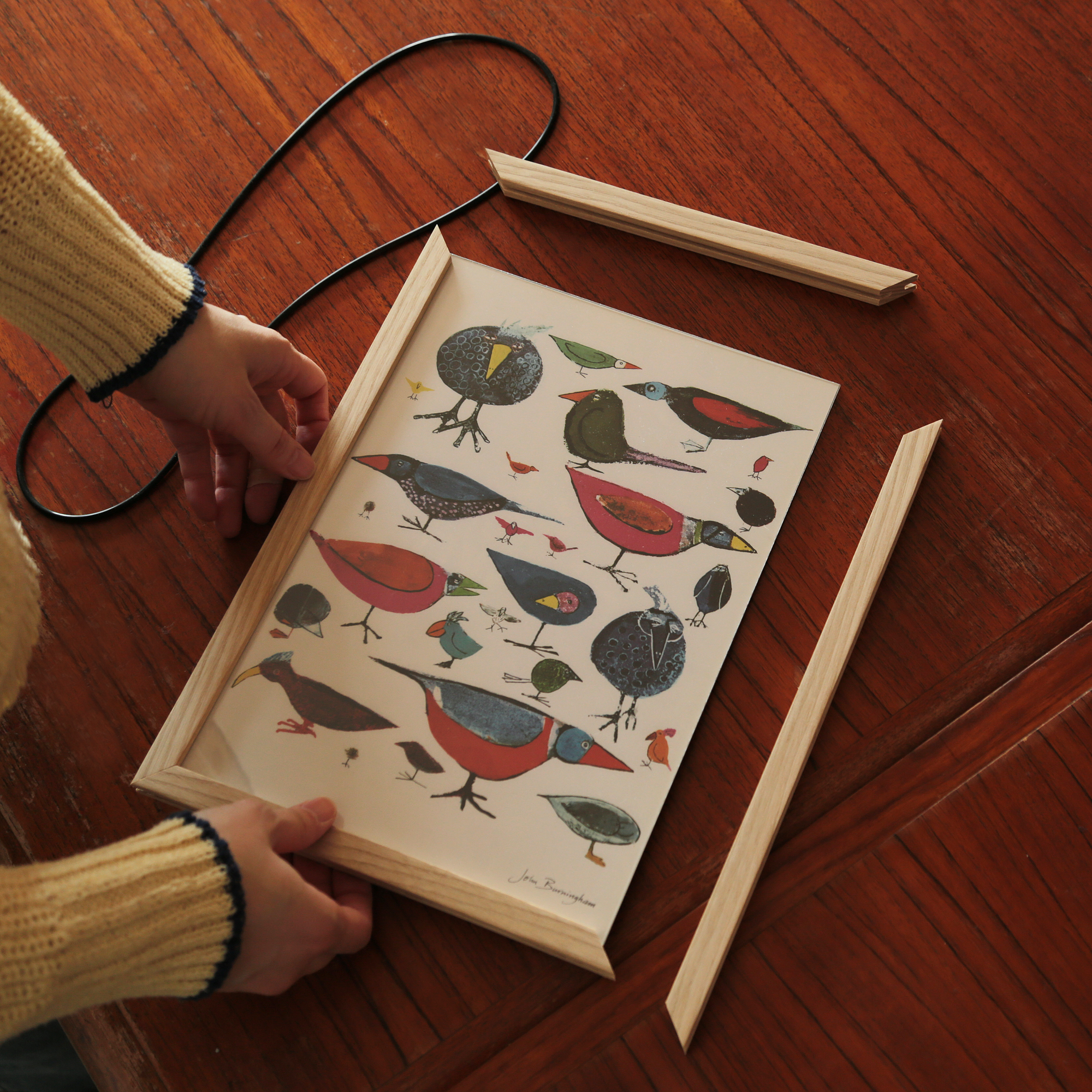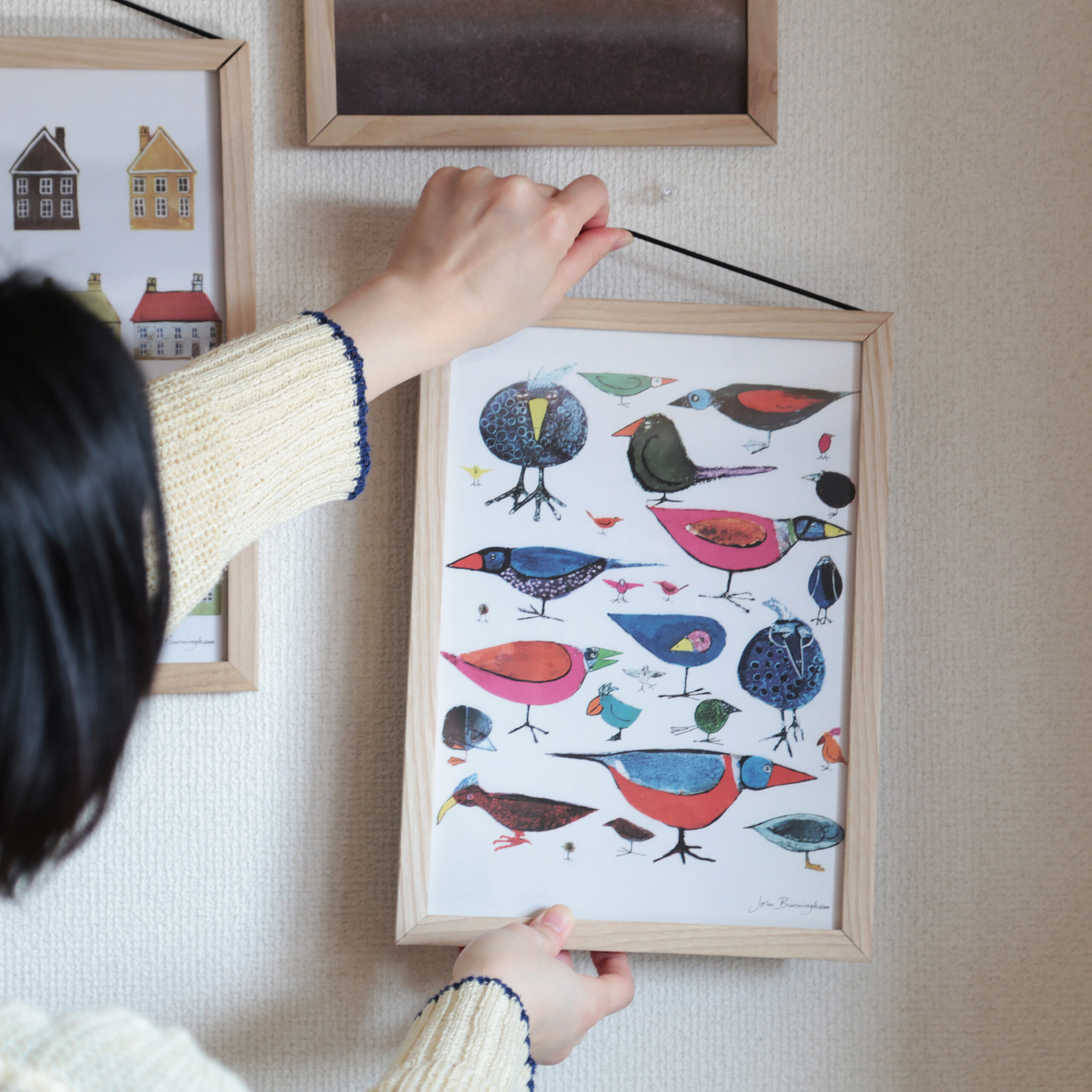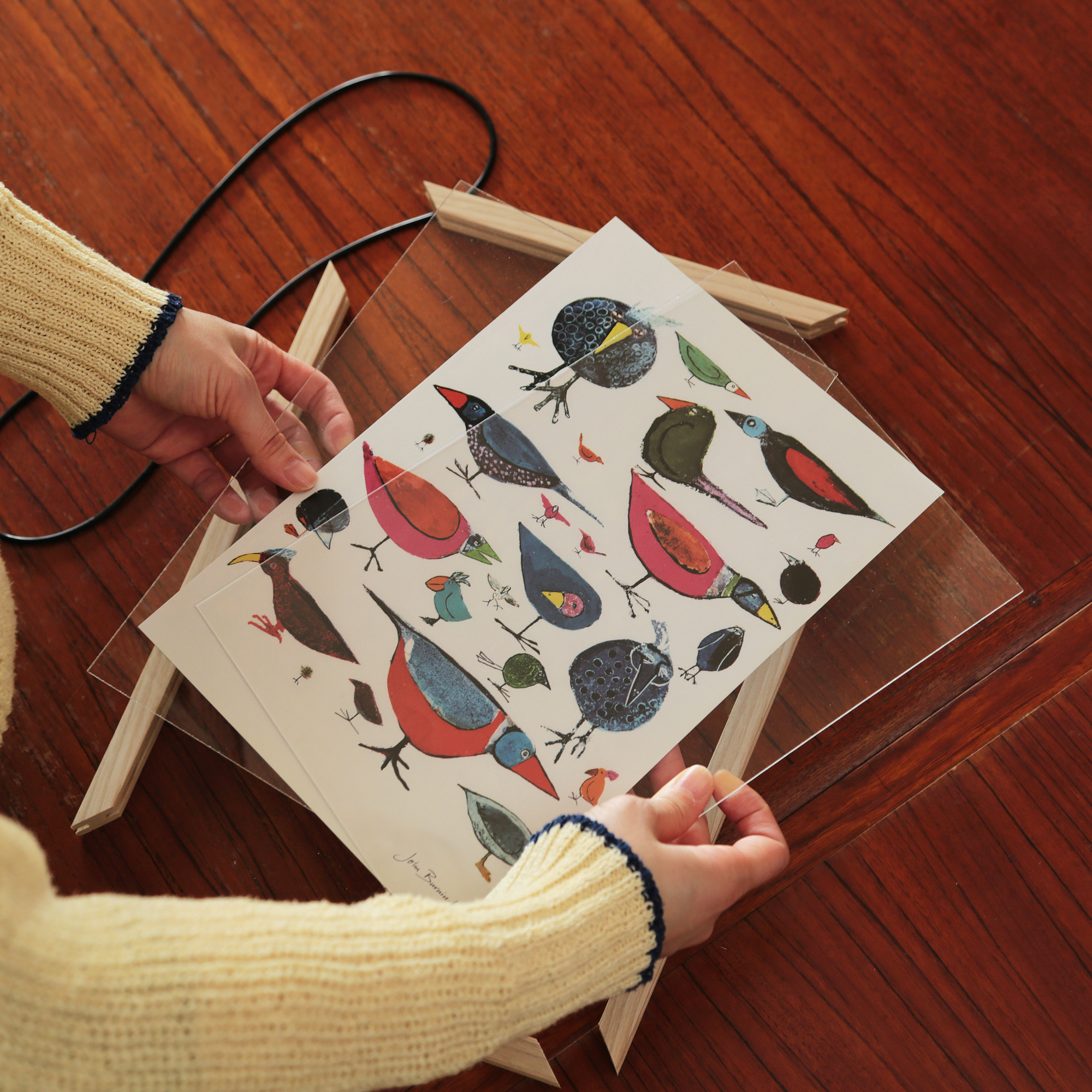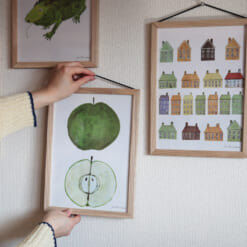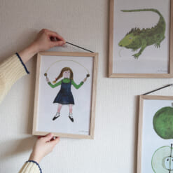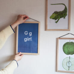 日々の暮らしの中にさりげなく溶け込むよう、ポスターフレームに仕立てました。その日の気分に合わせて、イラストとフォント、それぞれの魅力をお楽しみいただけます。