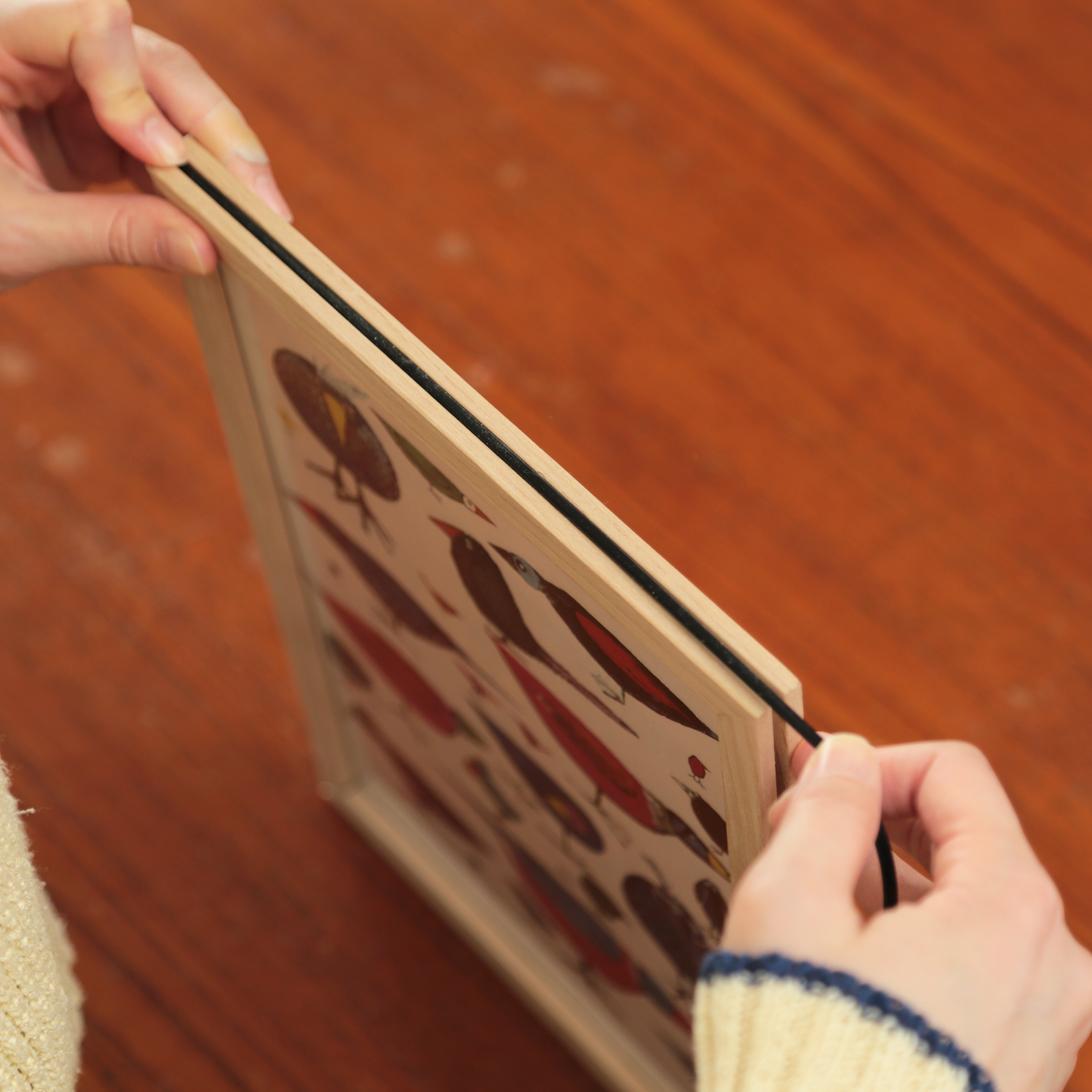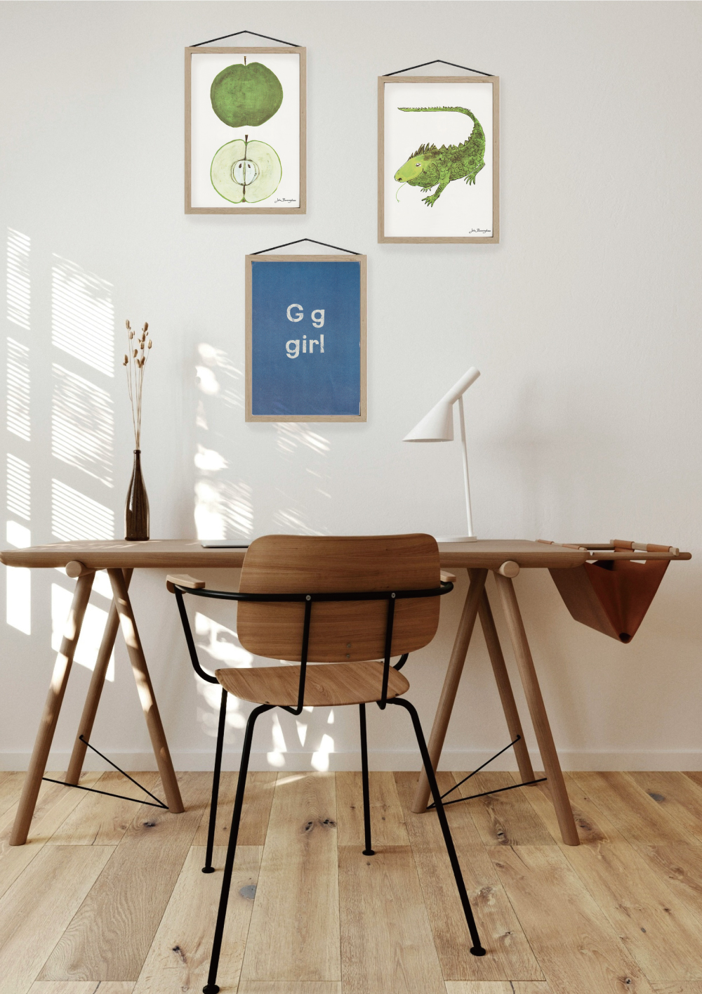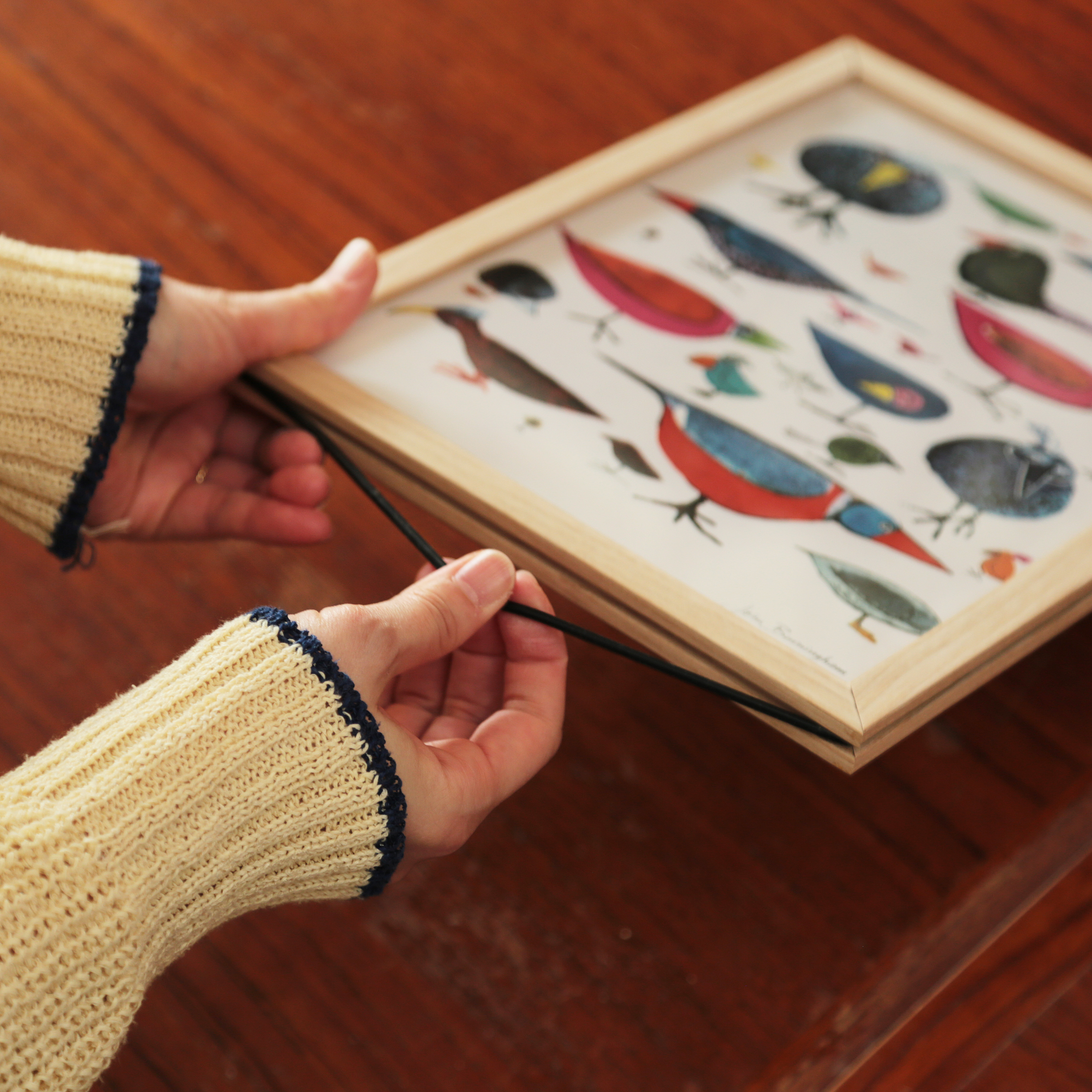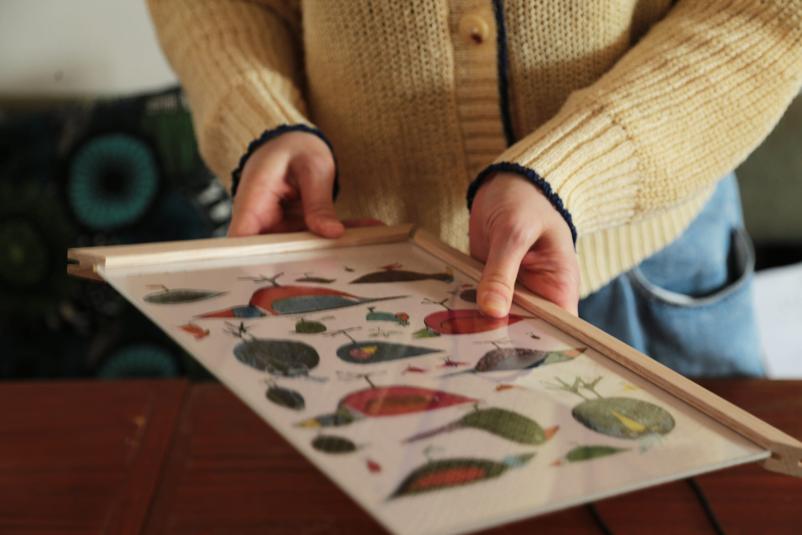 日々の暮らしの中にさりげなく溶け込むよう、ポスターフレームに仕立てました。その日の気分に合わせて、イラストとフォント、それぞれの魅力をお楽しみいただけます。