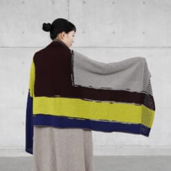 ストールには透かしの技法を施し、水面の揺らぎのような軽やかさと奥行きをプラス。巻くたびに異なる表情が現れ、装いに小さな驚きと楽しさを与えてくれます。