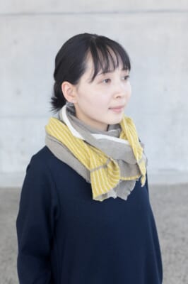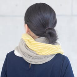筒状になっており、首を通すだけで身に付けることができるのでとても手軽に首元のアクセントにもなり、暖かくしてくれます。