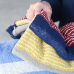一周の中に空のグラデーションをイメージしたストライプを太さを変えてデザインし、アクセントカラーを付けることでメリハリのある巻き心地を楽しめます。