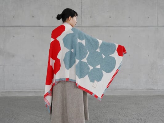 最上川を流れるなかで角が取れしなやかな丸みを帯びていく、そんな自然が作る形の変化を表現したストールです。