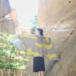 空に大きく羽を広げて飛ぶ鳥に憧れて描いたストールです。