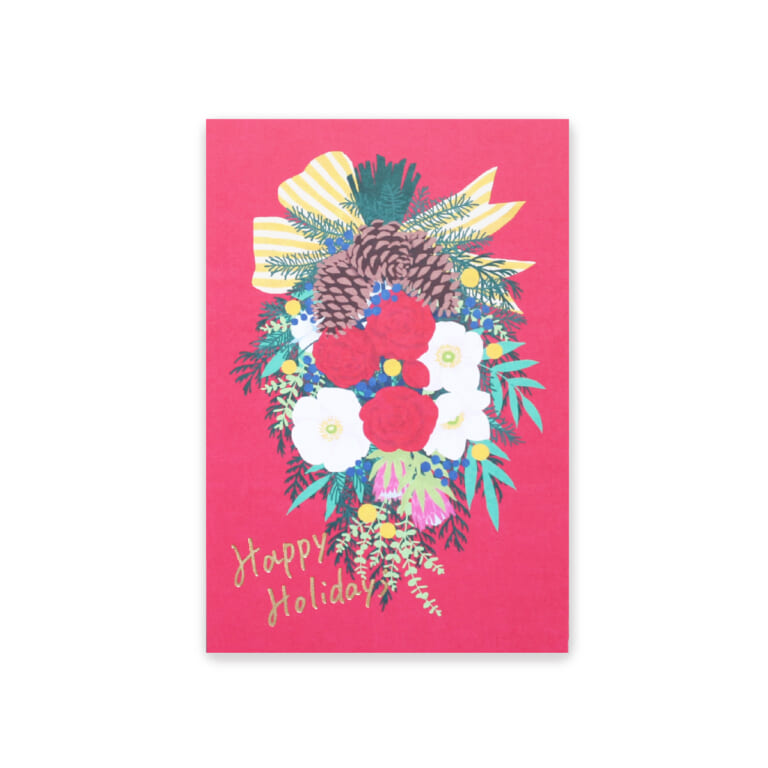 季節を飾る植物たちと、ワンポイントにゴールドのメッセージが煌めきます。